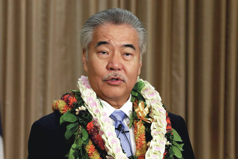 In this Jan. 21, 2020, file photo, Gov. David Ige speaks to reporters in Honolulu after delivering his state of the state address at the Hawaii State Capitol. (AP Photo/Audrey McAvoy, File)