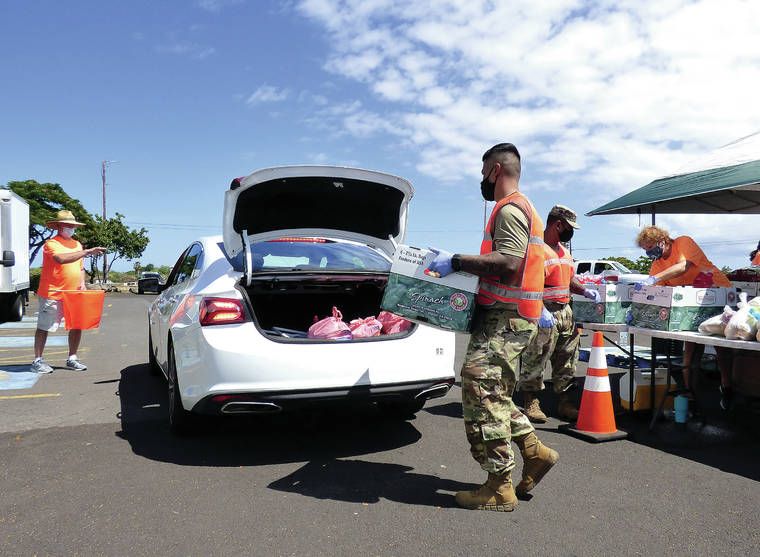 Two more Ohana Food Drops are slated this month: June 25 at Pahoa Community Center in Puna and June 29 at Naalehu Hongwanji in Ka‘u. In July, four drops will be held: July 2 at Waimea District Park, July 14 at Afook-Chinen Civic Auditorium in Hilo, July 23 at Old Kona Airport Park in Kailua-Kona, and July 27 at Naalehu Hongwanji.