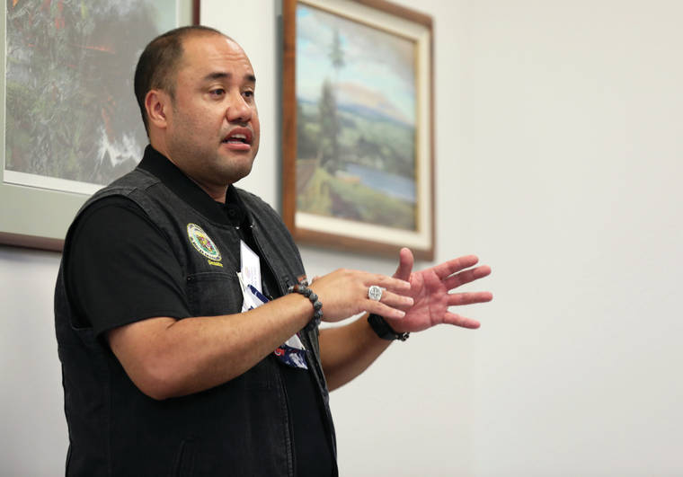 Kelsey Walling/Tribune-Herald State Sen. Donovan Dela Cruz talks about the need for more commercial agriculture to boost the local economy on the Big Island during a meeting at the Daniel K. Inouye U.S. Pacific Basin Agricultural Research Center in Hilo last Wednesday.