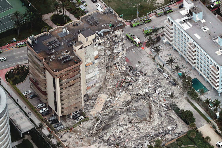SURFSIDE, Fla. — A beachfront condo building partially collapsed Thursday outside Miami, killing at least one person and trapping others in the tower that resembled a giant fractured dollhouse, with one side sheared away. Dozens of survivors were pulled out, and rescuers kept up a desperate search for more.