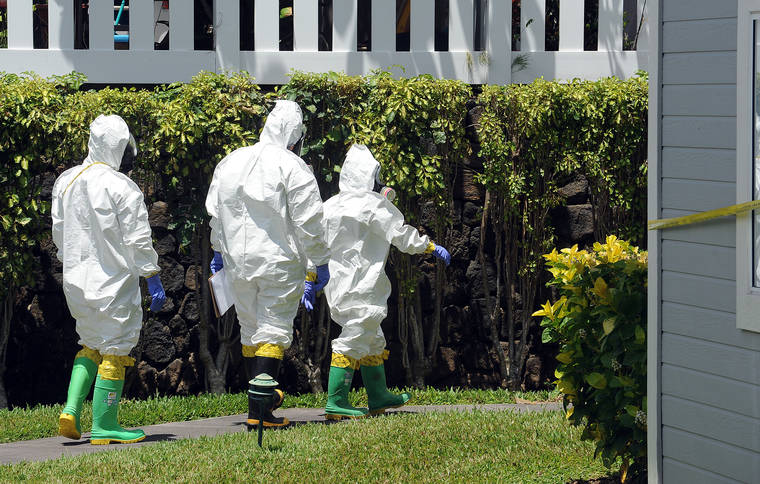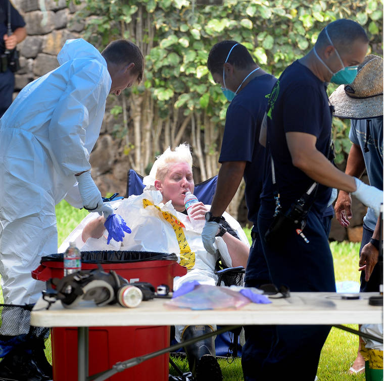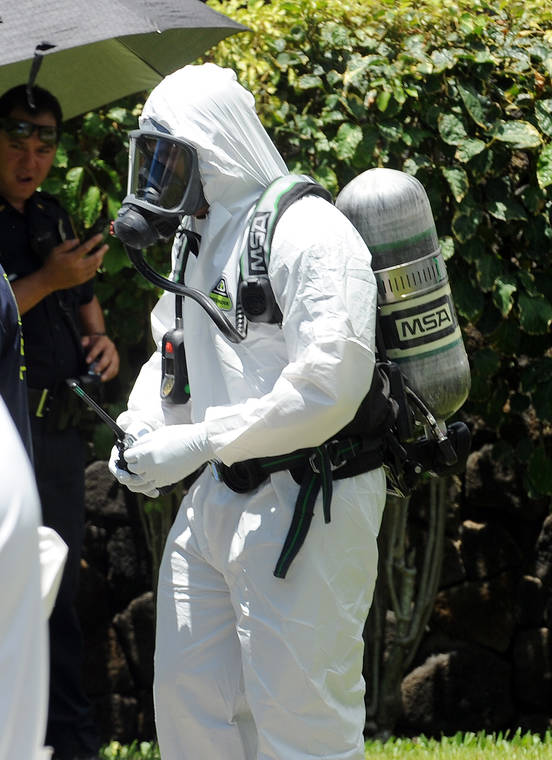 On Friday, four members of the division joined Hawaii Fire Department Hazmat personnel and entered the building donning full protective gear.