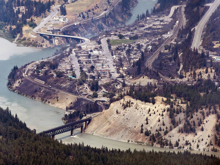 Officials said it was unclear whether anyone remained in the village 95 miles northeast of Vancouver due to a lack of cell service and because it wasn’t safe to enter most of the area.