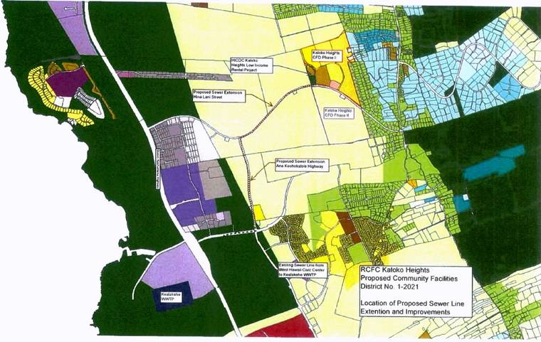 Developers want to provide sewer service to the affordable housing component of the project, about 100 units on 10 acres on Hina Lani Street between Ane Keohokalole and Mamalahoa highways. Each unit at the Kaloko project would be about 750 square feet and come furnished with a range, oven, refrigerator and solar water heating.
