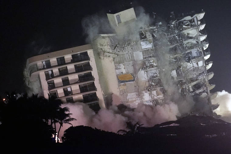 SURFSIDE, Fla. — Demolition crews set off explosives late Sunday that brought down the damaged remaining portion of a collapsed South Florida condo building, a key step to resuming the search for victims as rescuers seek access to new areas of the rubble.