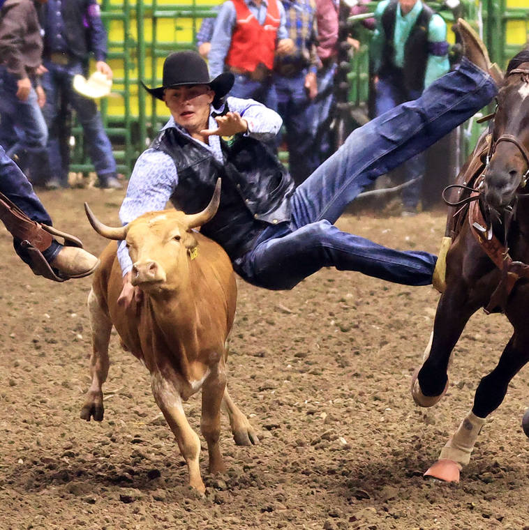 “It’s definitely one of the biggest rodeos I’ve been to,” he said. “I wasn’t really nervous, I just felt there was more energy in the building, and competing with the announcer saying I was from Hawaii and the cheering, I got more energized than any other rodeo.”