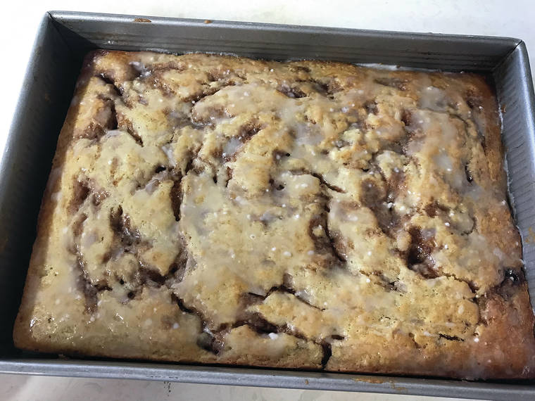 Here’s an easy cinnamon roll cake that would be perfect for breakfast.