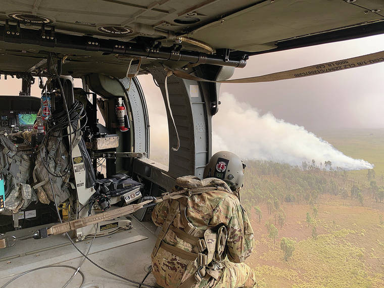The chief Sunday commended the various paid and volunteer county, state and federal assets battling the fire that broke out at 11 a.m. Friday above the paved area of Mana Road in the Puukapu region and has been fanned by strong winds, with gusts up to 40 mph. Ground crews are being assisted by helicopter drops, which includes five U.S. Army aircraft, as well as bulldozers working to cut breaks around the flames.