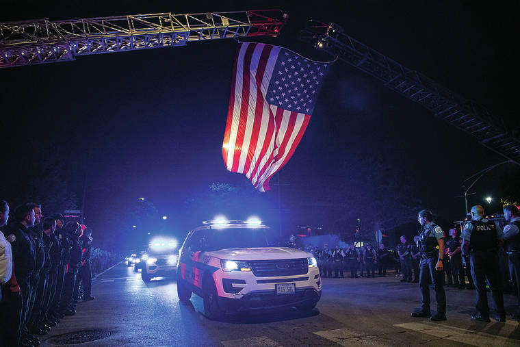 CHICAGO (AP) — A 29-year-old female police officer in Chicago was killed and another officer was seriously wounded in an exchange of gunfire during a traffic stop, officials said Sunday, the city’s mayor later citing the shooting as a reason for Chicagoans to work together to stem violence.
