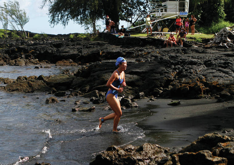 Chow, a 2021 Kamehameha graduate, finished in 23 minutes, 2 seconds, behind Noelani Vargas, who won her fifth women’s title – and first overall – in 21:49 at the one-mile open ocean swim.