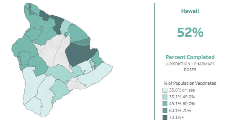 Hilo and Honokaa are leading the Big Island in the percentage of the population vaccinated for COVID-19.