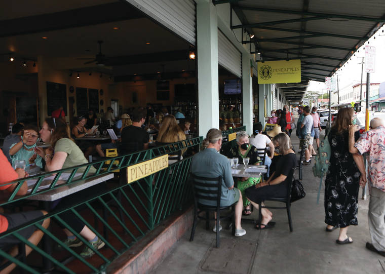 Kelsey Walling/Tribune-Herald People wait to dine Tuesday at Pineapples in Hilo.