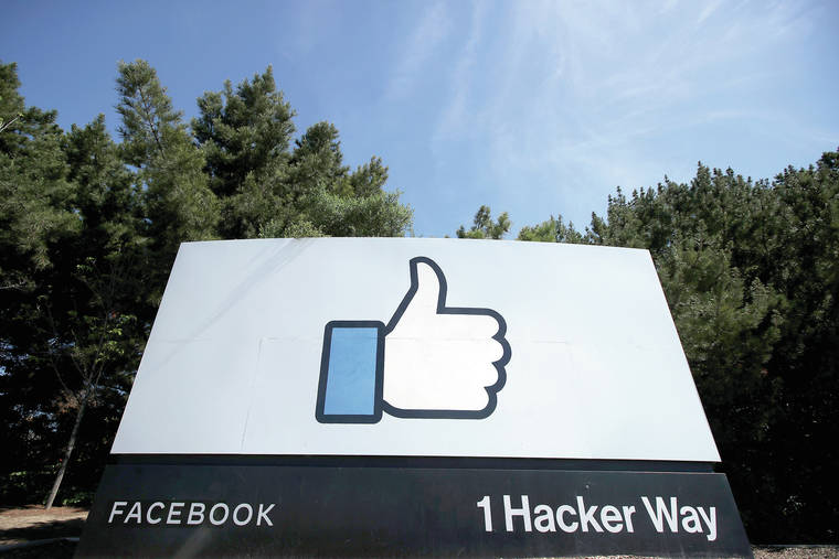In this 2020 file photo, the thumbs up like logo is shown on a sign at Facebook headquarters in Menlo Park, Calif. (AP Photo/Jeff Chiu, File)