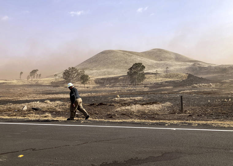 WAIMEA — A metal roof sits atop the burned remains of a homestead on the once-lush slopes of Hawaii’s Maunakea — a dormant volcano and the state’s tallest peak — charred cars and motorcycles strewn about as wind-whipped sand and ash blast the scorched landscape.