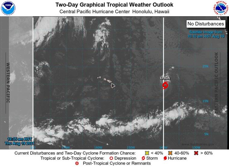Tropical Storm Linda, which weakened from a hurricane overnight, is set to enter the Central Pacific basin.