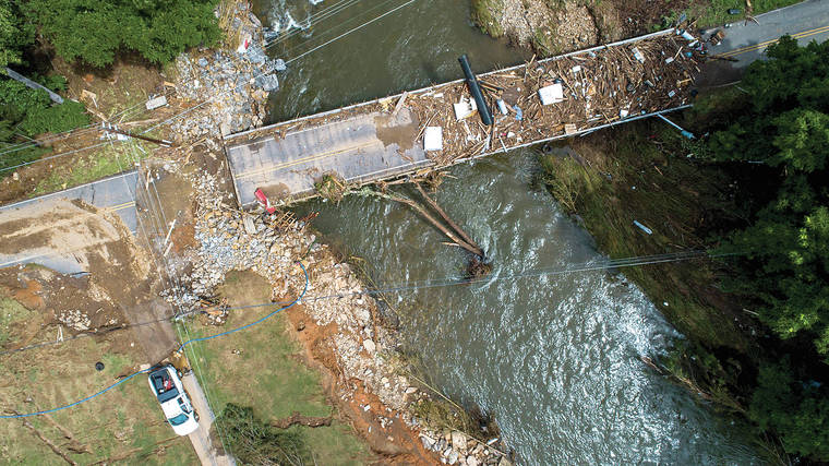 More than 200 people searched flooded areas along the Pigeon River. At least 10 bridges were damaged or destroyed in the Cruso community, where engineering teams worked to construct temporary bridges to allow people in and out of their homes.