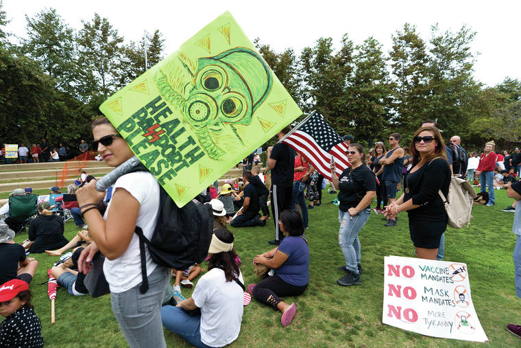 PHOENIX — The Hawaii lieutenant governor watched in horror as protesters showed up outside his condo, yelled at him through bullhorns and beamed strobe lights into the building to harass him over vaccine requirements.