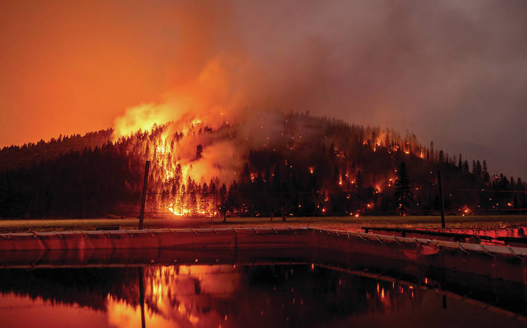 PLACERVILLE, Calif. (AP) — A wildfire burning for a week in Northern California continued to grow out of control, one of about a dozen big blazes in the drought-stricken state that have destroyed hundreds of homes and forced thousands of people to evacuate.