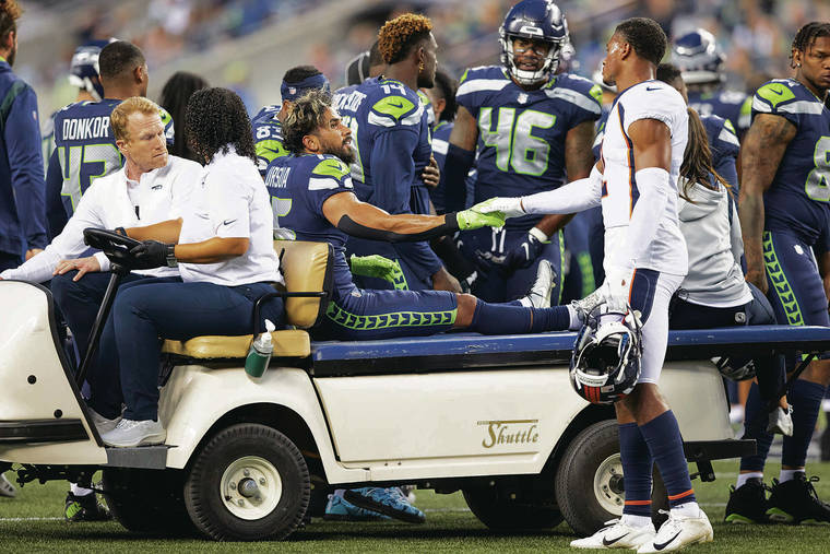 Ursua, a Hawaii and Kealakehe High alum, injured his knee running a route during Seattle’s preseason game against Denver Saturday night at Lumen Field. He caught three passes in the game before he got hurt, apparently without contract from a Broncos defender.