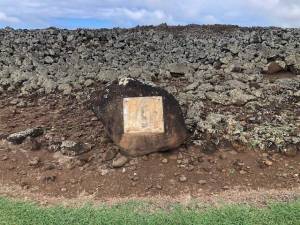 A plaque denoting Mo‘okini Heiau as a registered national historic landmark was recently cut or pried loose from a boulder and stolen from the centuries-old North Kohala temple.