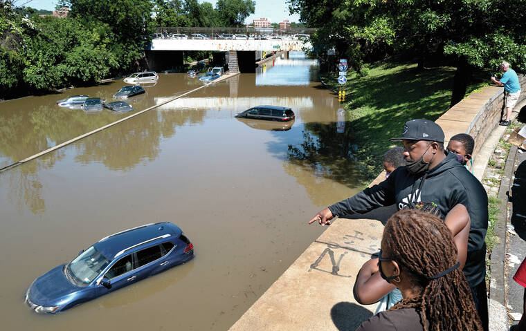 Ida’s soggy remnants merged with a storm front and soaked the Interstate 95 corridor, meteorologists said. Similar weather has followed hurricanes before, but experts said it was slightly exacerbated by climate change — warmer air holds more rain — and urban settings, where expansive pavement prevents water from seeping into the ground.
