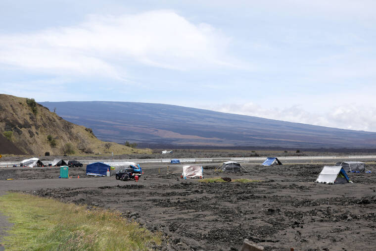 Kelsey Walling/Tribune-Herald In this 2020 file photo, a few tents are set up off Saddle Road and Maunakea Access Road.