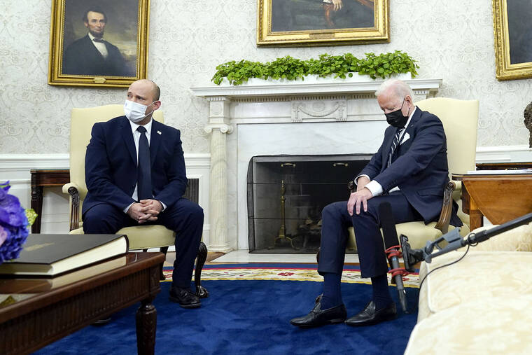 In this Aug. 27 photo, President Joe Biden meets with Israeli Prime Minister Naftali Bennett in the Oval Office of the White House in Washington. (AP Photo/Evan Vucci, File)