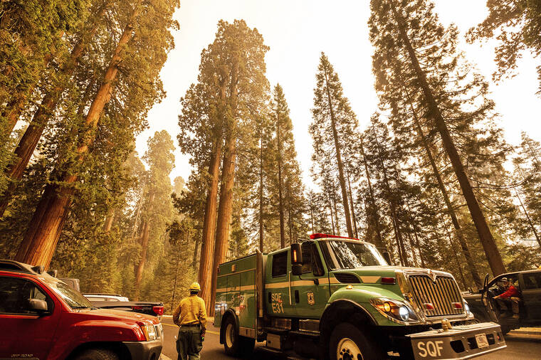 THREE RIVERS, Calif. (AP) — California wildfires have burned into at least four groves of gigantic ancient sequoias in national parks and forests, though cooler weather on Friday helped crews trying to keep the flames away from a famous cluster containing the world’s largest tree.