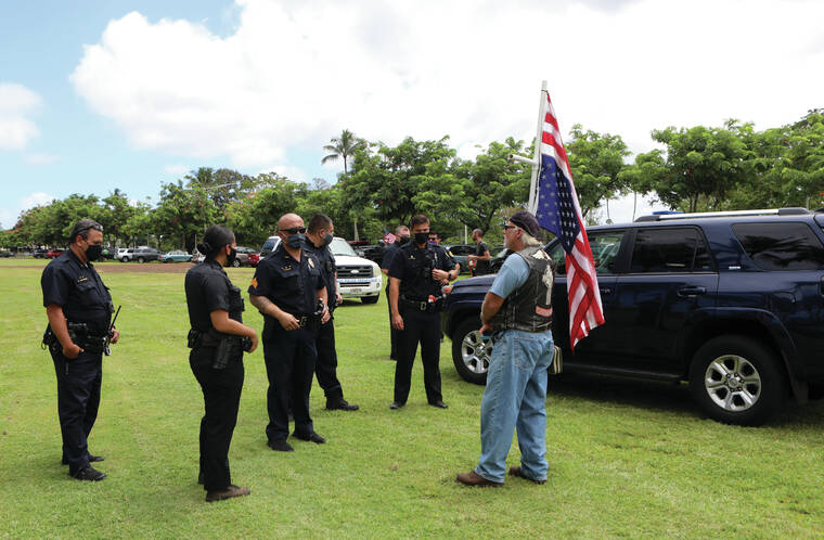 While law enforcement was present throughout the demonstration, Cummings expressed frustration with representatives in the Hawaii state government who continually pass mandates that their constituents are against.