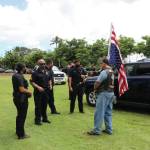 Before the event started, Hilo police officers arrived at Bayfront Park to tell the group to take down tents, which were in violation of the county rule that prohibits canopies and pop-up tents at county parks.