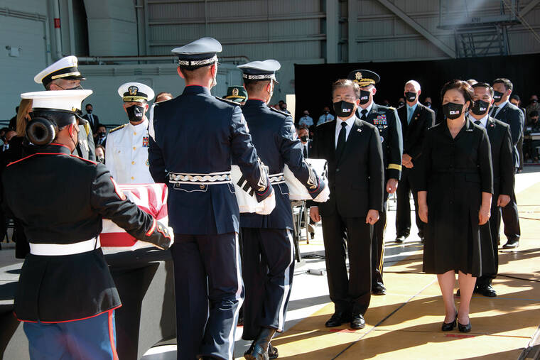 HONOLULU (AP) — South Korean President Moon Jae-in visited Hawaii this week as the remains of 68 Korean and six presumed U.S. service members were repatriated during a ceremony at Pearl Harbor.