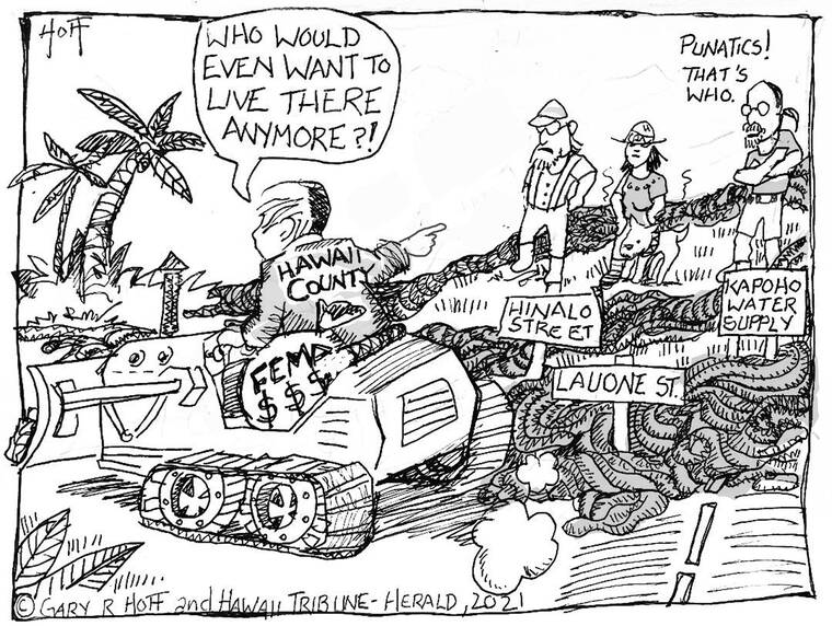 The Big Island as seen by Hawaii Tribune-Herald cartoonist Gary Hoff.