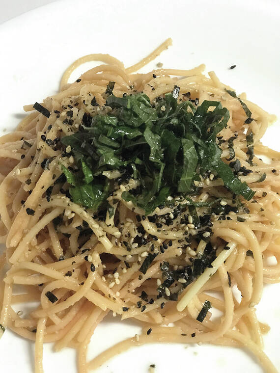 Photo courtesy Audrey Wilson Mentaiko pasta with shiso.