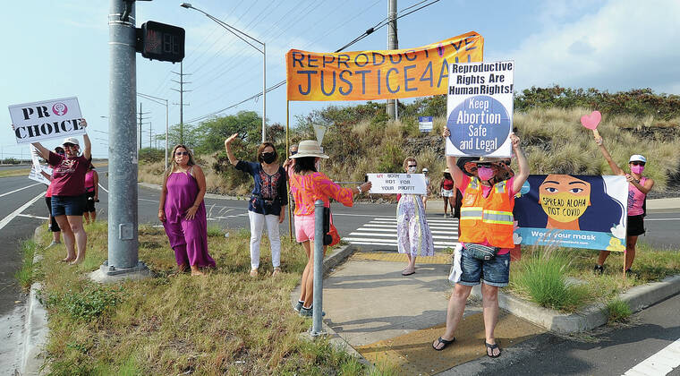 Abortion rights supporters rally Saturday on Queen Kaahumanu Hwy. (Laura Ruminski/West Hawaii Today)