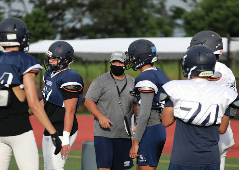 The thing that stands out most about Kamehameha’s new coach is his mindfulness for others. He understands everyone is in the same boat: Lots of inexperience with a focus on teaching the basics of blocking and tackling.