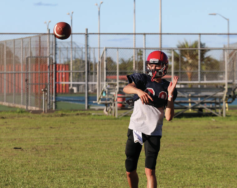 Kelsey Walling/Tribune-Herald Kaohu Kaluna, a sophomore, is set to start at quarterback for Keaau,