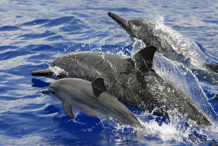 According to the study, an estimated 524 to 761 Hawaiian spinner dolphins, or naia, reside in waters around Kailua-Kona and 329 around Oahu. They’re frequently seen close to shore and are known for their tri-colored pattern, relatively small size at 5-6 feet and ability to spin while leaping in the air.