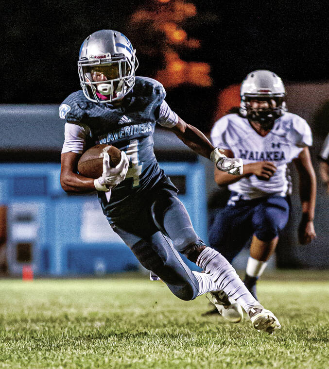 Kealakehe’s lead back found the end zone twice in the first half on long runs, allowing the Waveriders to stay ahead on the scoreboard despite their offense struggling at times to maintain drives.