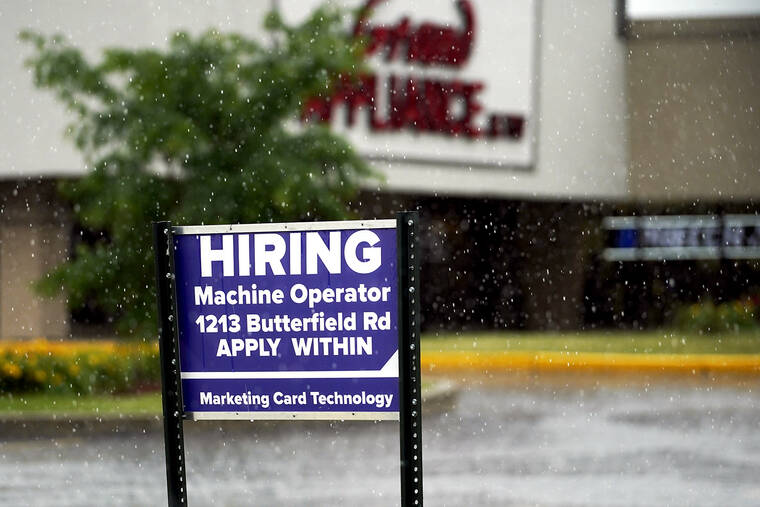 A hiring sign is displayed on June 24 in Downers Grove, Ill. (AP Photo/Nam Y. Huh, File)