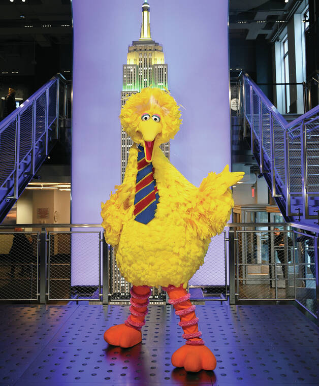 Sesame Street's Big Bird participates in the ceremonial lighting of the Empire State Building in honor of Sesame Street's 50th anniversary in 2019 in New York. (Photo by Evan Agostini/Invision/AP, File)