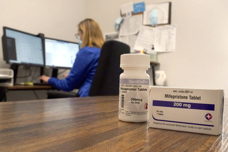 A nurse practitioner works in an office at a Planned Parenthood clinic as containers of the medication used to end an early pregnancy sits on a table nearby on Oct. 29 in Fairview Heights, Ill. Women with unwanted pregnancies are increasingly considering getting abortion pills by mail. (AP Photo/Jeff Roberson)