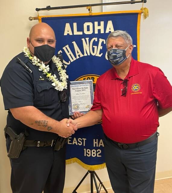 Every month the Aloha Exchange Club of East Hawaii honors a police officer in East Hawaii as its Officer of the Month. Officers are nominated by their supervisors and a winner is selected.