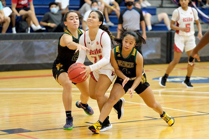 UHH opened the fourth quarter with another 8-0 run, getting a 3-pointer by Mindy Kawaha, a three-point play by freshman Heaven Samayoa-Mathis and a basket by Jenna Waki to push the margin to 52-43.