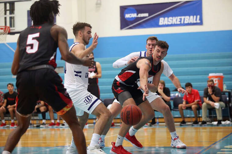 UHH photo UHH’s Aniwaniwa Tait-Jones tries to make a pass inside Wednesday against Lubbock Christian at Hawaii Pacific's gym.