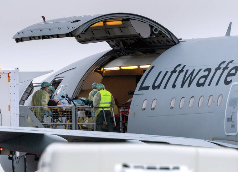 BERLIN (AP) — Germany’s health minister said Saturday he hopes that the sight of air force planes transferring patients across the country will act as a “wake-up call” to millions who are still holding out on getting vaccinated against COVID-19.