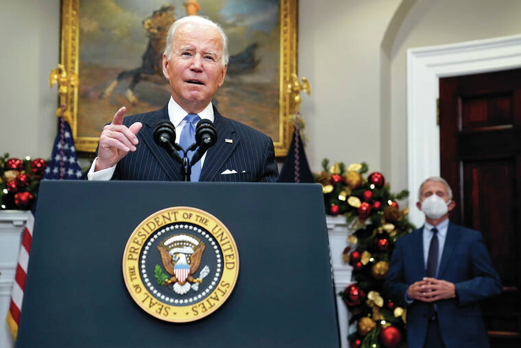 When omicron arrives, and it will, Biden said, America will “face this new threat just as we’ve faced those that have come before it.”