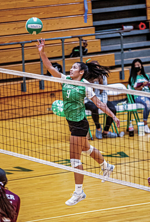 “They haven’t played in so long: first set jitters and wanting to do well, over-adrenaline,” Konawaena assistant coach August Dias said of the difference in his team’s play after the first set. “They settled down and played a lot better in the second and third sets.”
