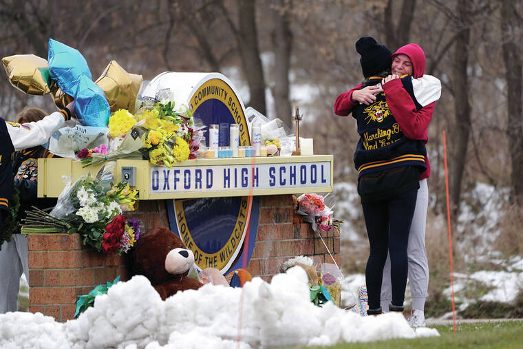 Ethan Crumbley, 15, has been charged as an adult with two dozen crimes, including murder, attempted murder and terrorism, for a shooting Tuesday at Oxford High School in Oakland County, roughly 30 miles (50 kilometers) north of Detroit.
