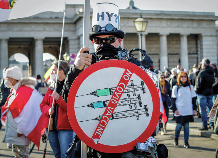 A man takes part in a demonstration against the country's coronavirus restrictions Nov. 20 in Vienna, Austria. (AP Photo/Lisa Leutner, File)