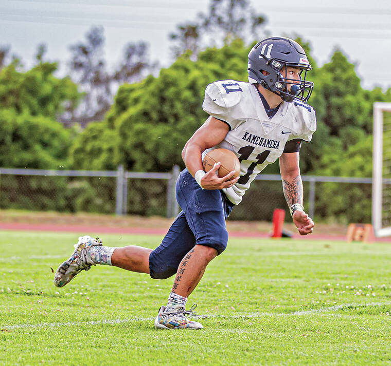 On Nov. 27 at HPA, Kamehameha controlled parts of the game, finishing with more yards (203-194), more plays (54-41) and more first downs (14-8), but also far more turnovers (5-1). Kamehameha stubbed its toe by losing four fumbles in a 14-10 setback.