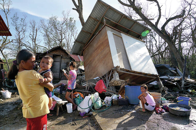 Pictures posted on Dinagat’s website show low-slung houses with roofs either blown off or damaged and surrounded by tin roof sheets and debris. The nearby island of Siargao, known as the surfing capital of the Philippines, also was pummeled by the typhoon.